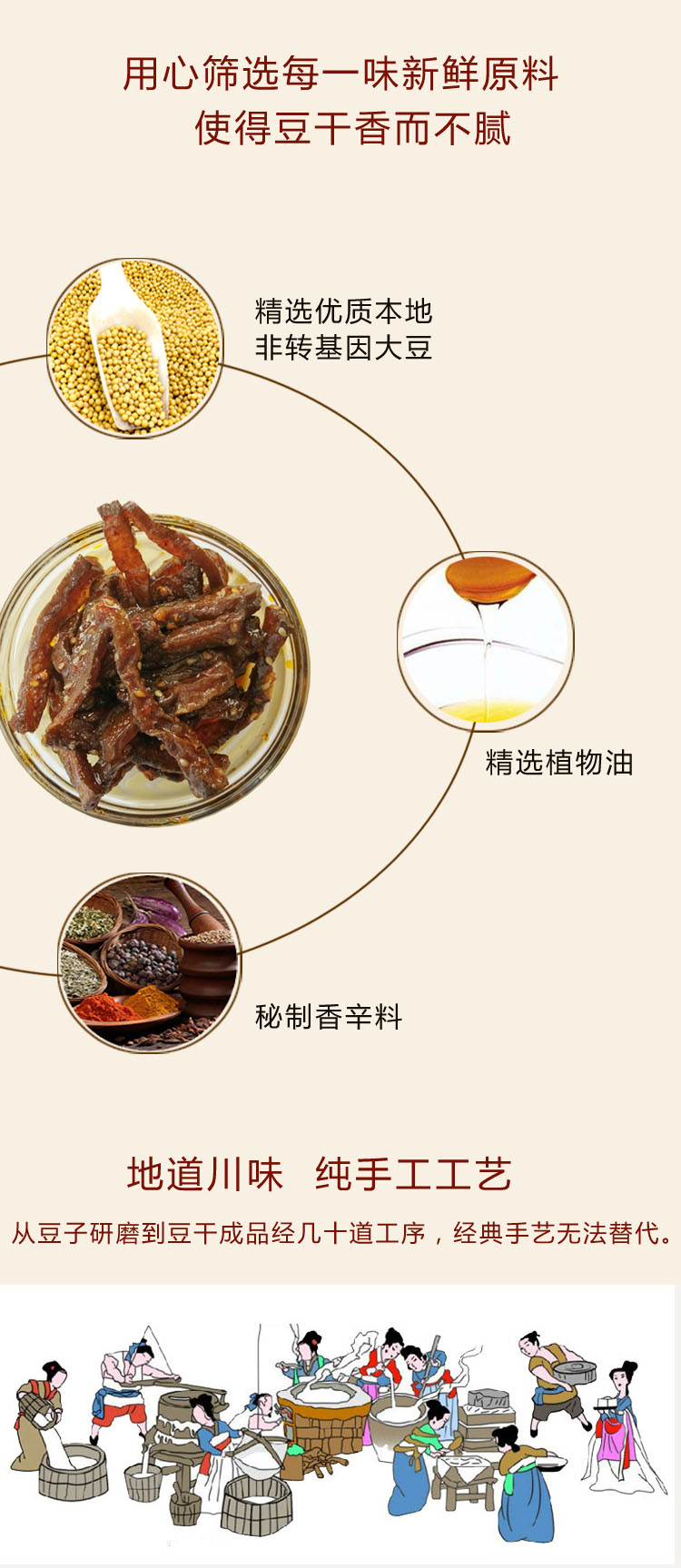 亲爱的吃货们,由于本店豆腐干未添加防腐剂,天热易变质,为保证到货质量和口感,故每年4月初到10月初快递需要时间较长或者炎热的地区一律不发货,给各位亲带来不便,敬请谅解!